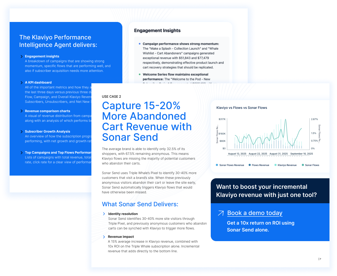 That’s where Klaviyo and Triple Whale come in. Together, they create a powerful retention engine that automates analysis, reveals hidden revenue, and helps you make smarter decisions — faster.