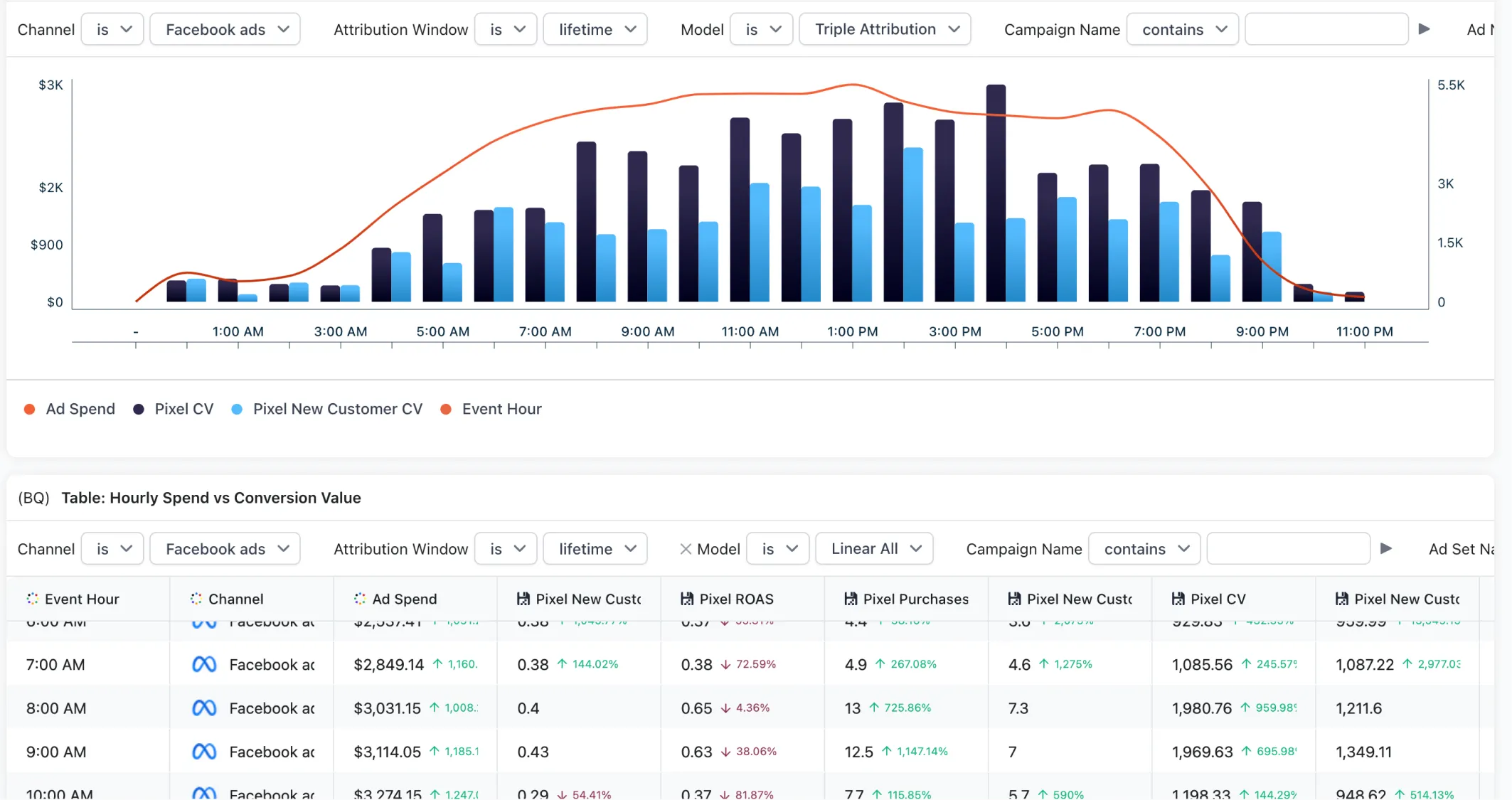 2. Hourly Breakdowns: Spend, Revenue, ROAS, CPA, and more.