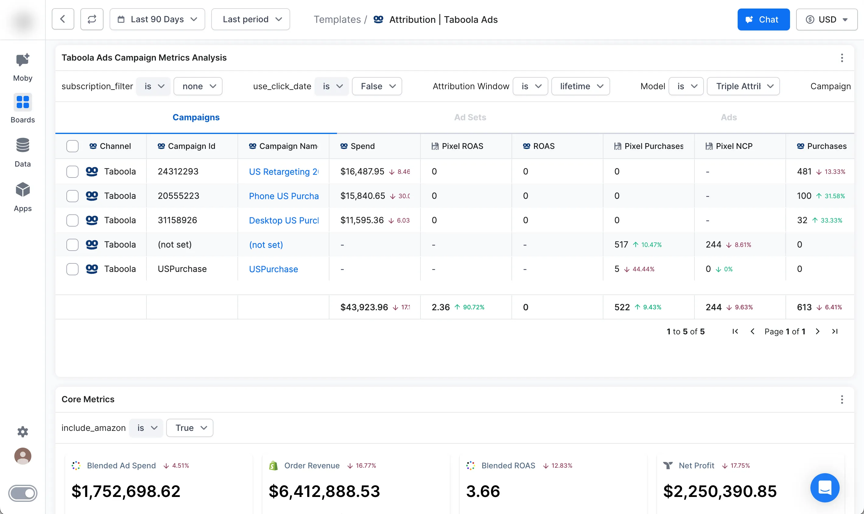 This Board is your command center for dissecting the performance of your Taboola campaigns through the lens of Triple Whale's robust analytics. By integrating Triple Whale's first-party data and Taboola's extensive ad metrics, you gain unparalleled visibility into your marketing efforts. It's all about connecting the dots between ad spend and actual sales, ensuring every decision is data-driven.
