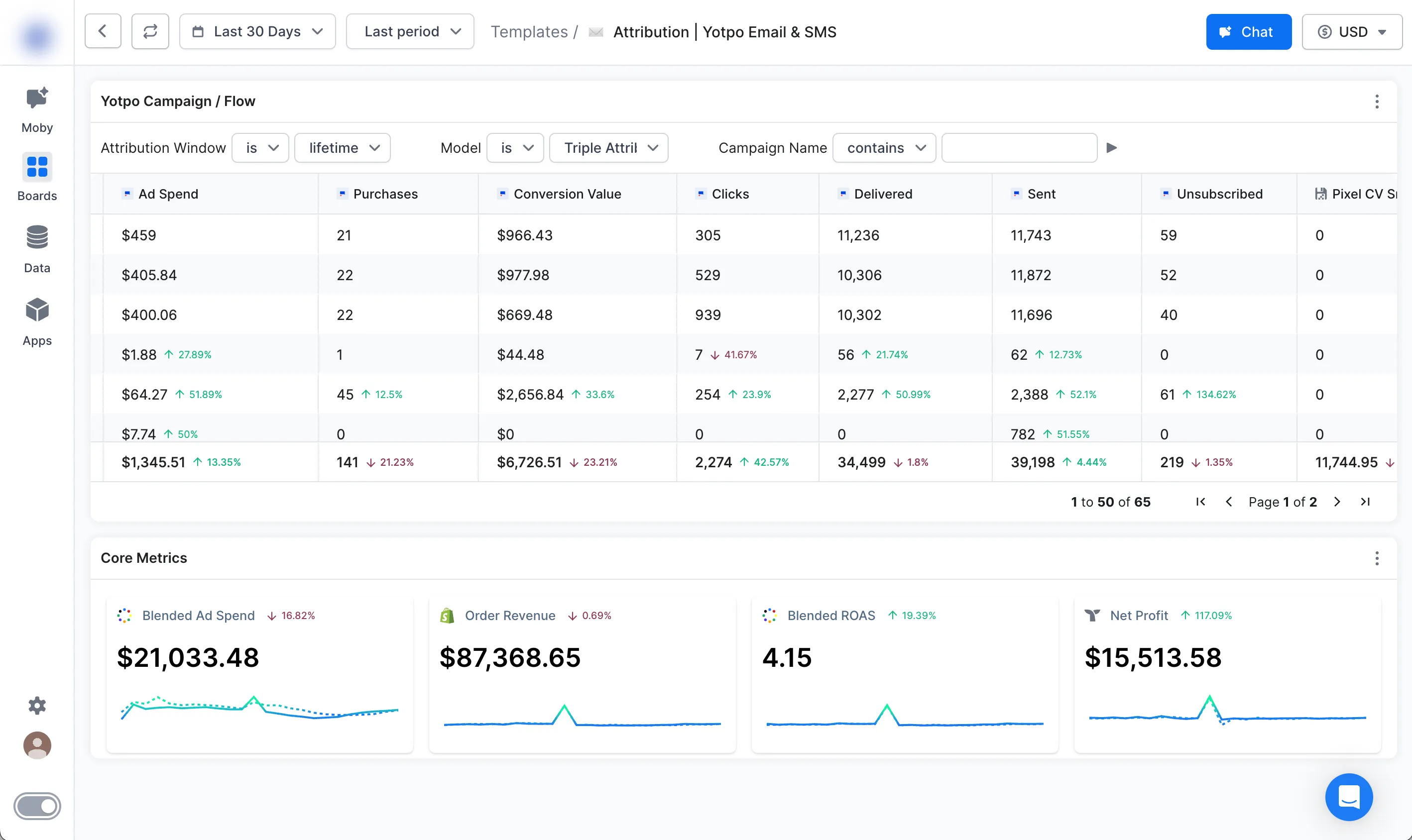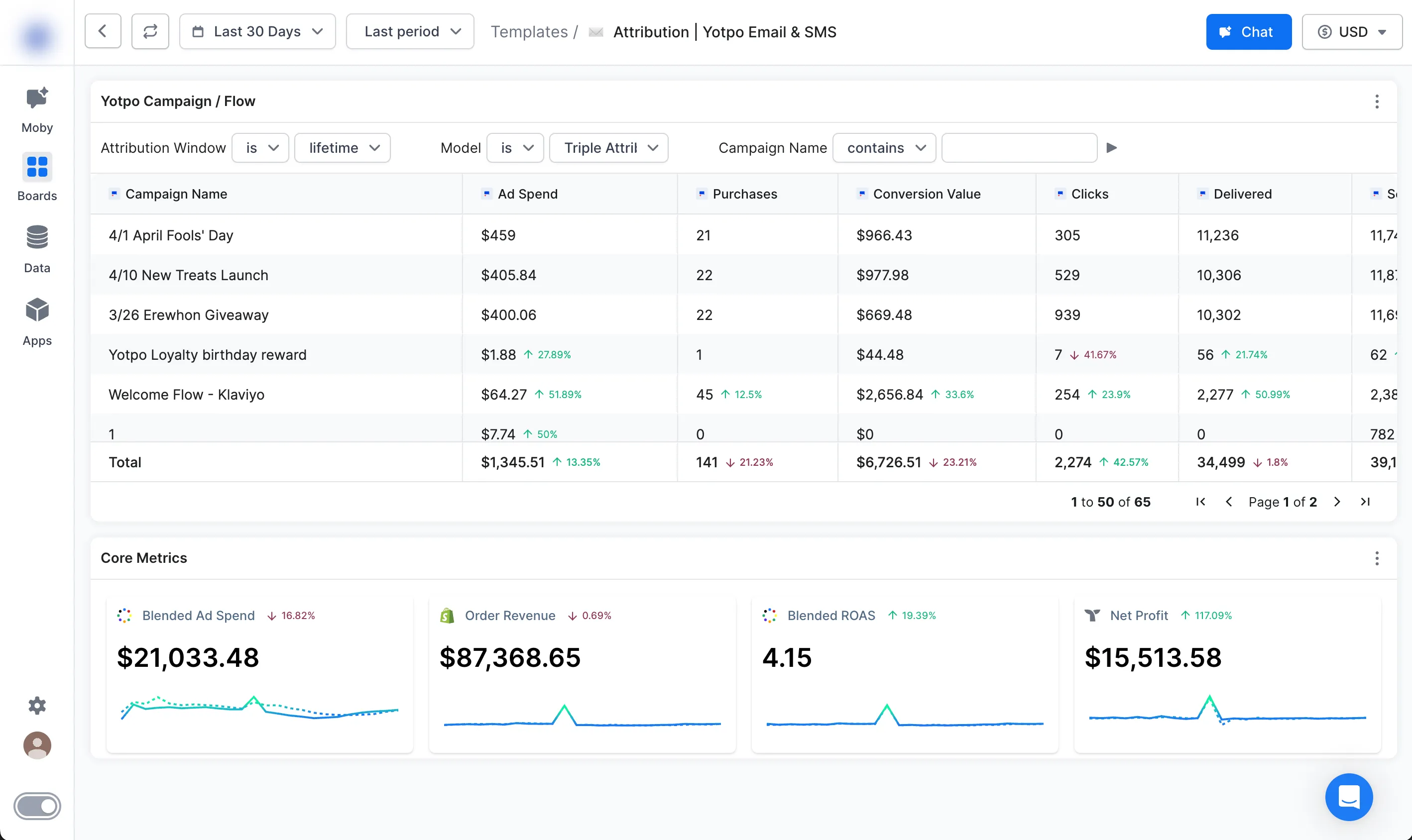 The Yotpo Email / SMS Board is your ultimate tool for transforming email and SMS pushes into measurable revenue. With the power of trusted first-party data and the flexibility of seven unique attribution models, this Board offers a comprehensive analysis of your marketing channels. Dive deep into each campaign's performance, compare providers, and unlock actionable insights to optimize your strategies for maximum impact.